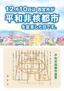 西宮市は、昭和58年(1983年)12月10日、兵庫県内でいちはやく「平和非核都市」を宣言しました。