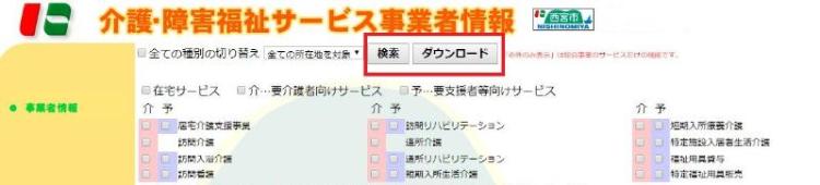 「ダウンロード」ボタンを押すと、該当する施設等の一覧を、エクセル形式でダウンロードすることができます。