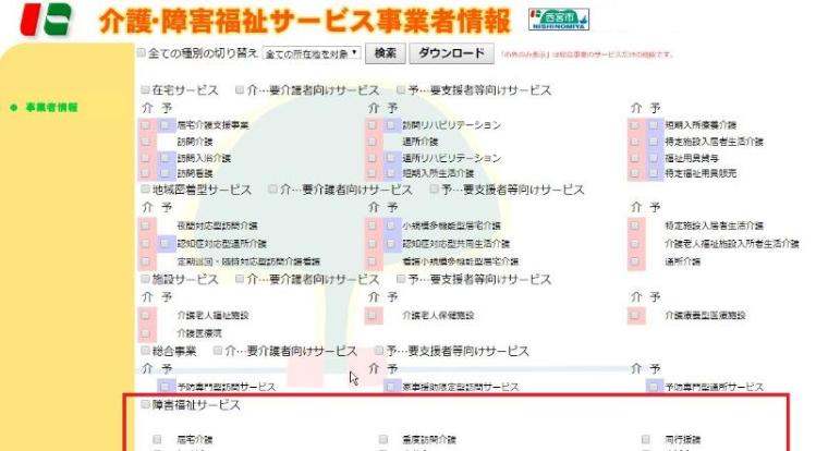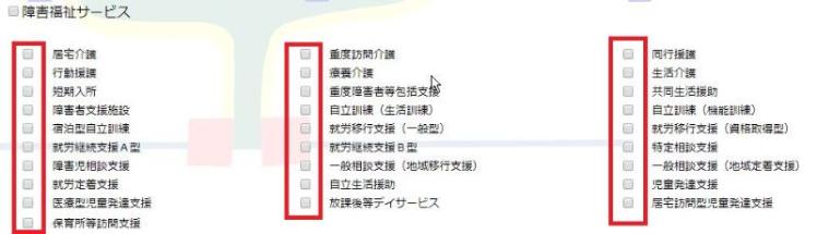 探したいサービスの種類にチェックを入れてください。複数のサービスを選択することも可能です。
