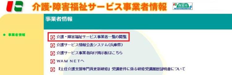 1.リンク先のメニューから「介護・障害福祉サービス事業者一覧の閲覧」を選択します